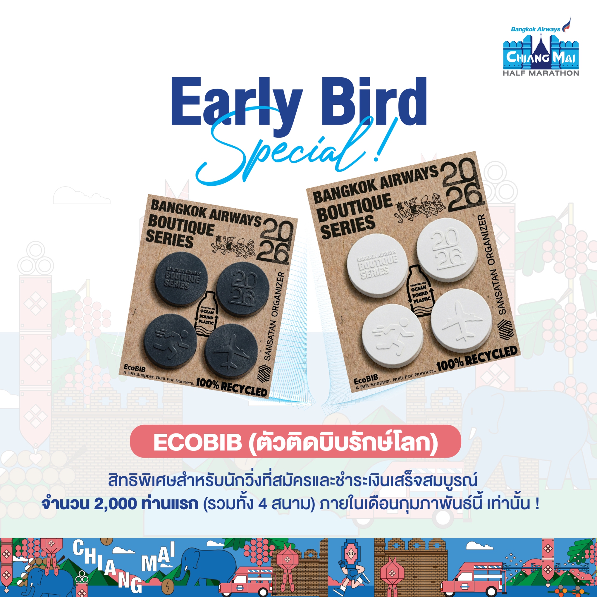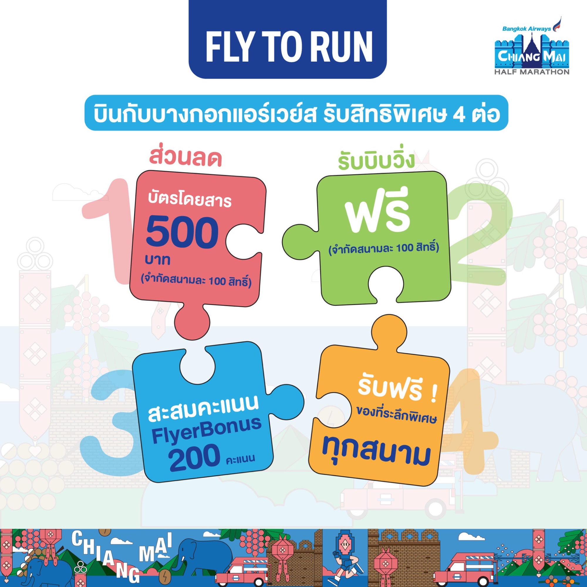 ต่อที่ 1 : นักวิ่ง*รับโค้ดส่วนลดบัตรโดยสารของสายการบินบางกอกแอร์เวย์สมูลค่า 500 บาท/ท่าน สำหรับการสำรองที่นั่งบัตรโดยสารเครื่องบินไป-กลับ ในเส้นทางเชียงใหม่ ภายในระยะเวลาที่กำหนดเท่านั้น (จำกัด 100 สิทธิ์ ต่อสนาม)