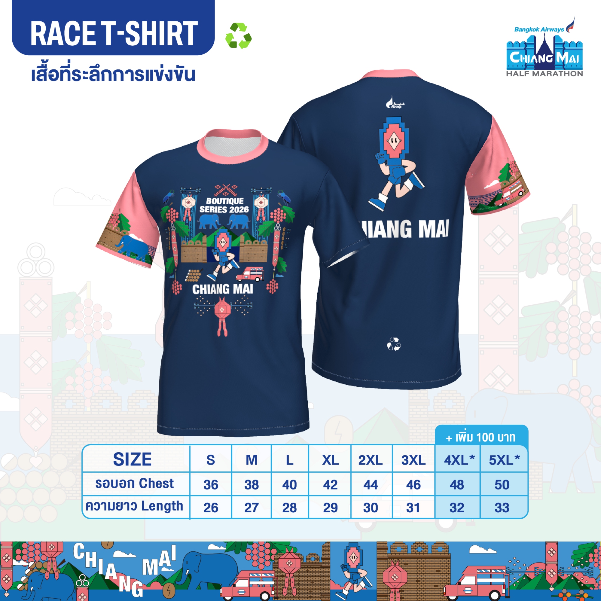 พร้อมพาทุกคนออกไปวิ่งกับคอลเลคชั่นเสื้อวิ่งดีไซน์ล่าสุดที่หยิบเอาอัตลักษณ์ของ เชียงใหม่ มาถ่ายทอดเป็นลวดลายสุดยูนีคบนผืนผ้า นอกจากดีไซน์ที่สวยงามโดดเด่นและการสวมใส่ที่สบายระบายอากาศได้ดีแล้ว เสื้อวิ่ง 1 ตัวยังใช้เส้นใยพลาสติกรีไซเคิลเทียบเท่าขวดน้ำ 20 ขวด ซึ่งช่วยลดขยะและดูแลโลกไปพร้อมกับทุกก้าวของคุณบนเส้นทางสายบูทีค