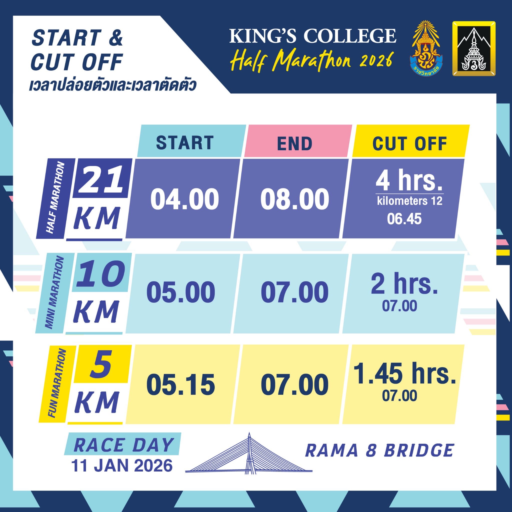 📌 จับเวลาโดยชิพไทม์ในระยะที่มีการแข่งขัน 21KM และ 10 KM